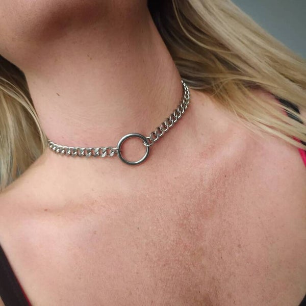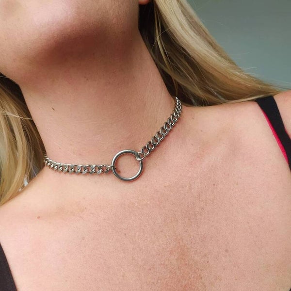 Chunky O ring curb chain choker