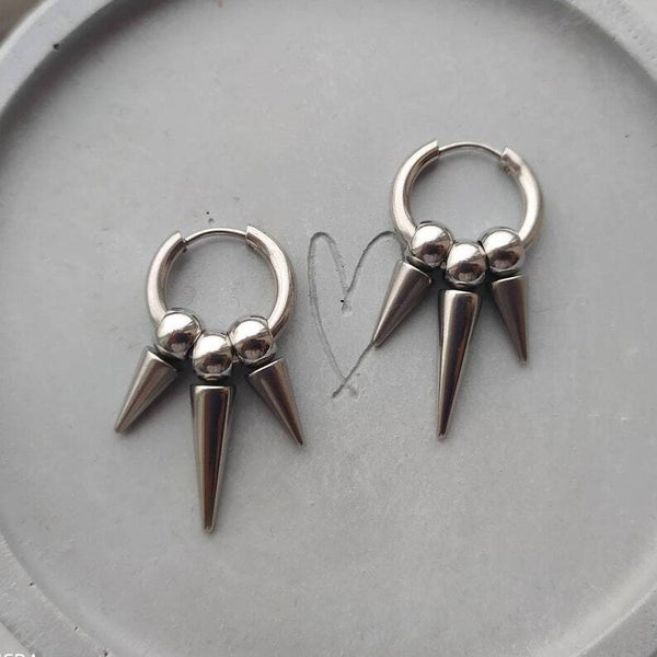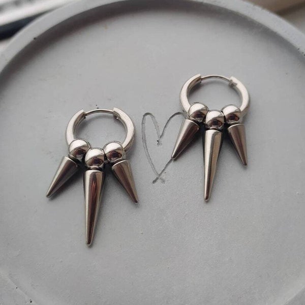 Punk/goth style Huggie hoop multi spike earrings in silver!