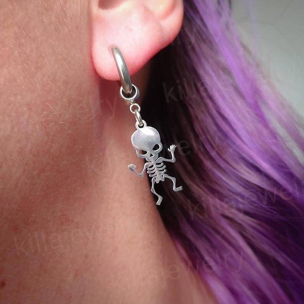 Punk/goth style silver skeleton huggie hoop earrings 💀