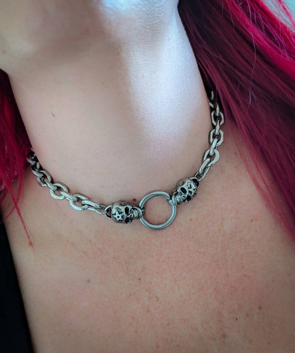 Double skull and O ring choker necklace