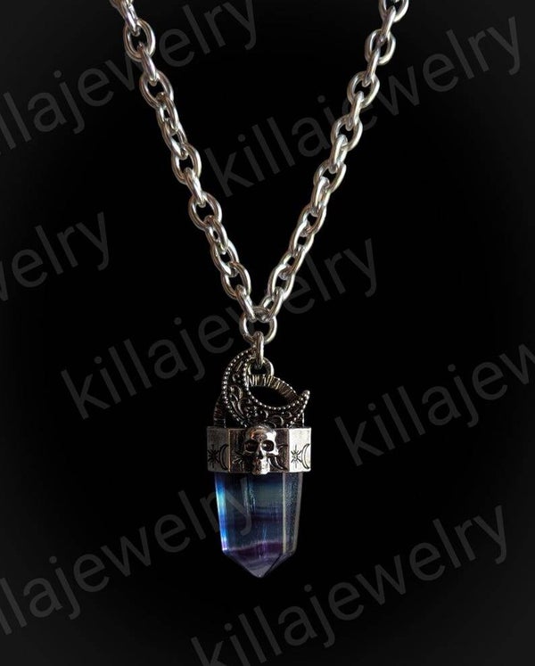 Pendant is made of genuine crystal quartz /obsidian/Amythst or fluorite gemstone.